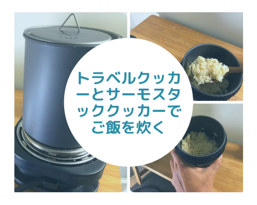 詳しい炊き方は「トラベルマルチクッカーとサーモスタッククッカーコンボでご飯を炊く」という記事でどうぞ。トラベルマルチクッカーという加熱調理器で炊飯をしてみました。